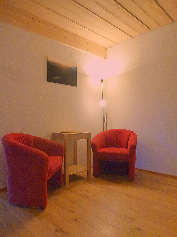 2. Obergeschoß mit zwei Schlafzimmern, einer großen Wohnküche mit Couchecke und SAT-TV, einem Bad mit Du/WC und Doppelwaschbecken und einem Vorratsraum.